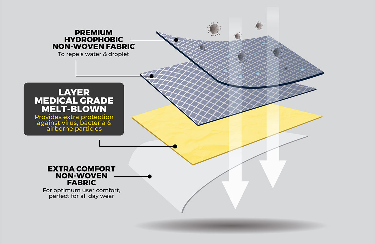 NeuMask (4-Ply) is made with 2 layers of melt-blown fabric which has a ≥ 99% BFE (Bacterial Filtration Efficiency) and ≥ 99% PFE (Particle Filtration Efficiency). Effectively blocking the spread of bacteria and viruses. Melt-blown fabrics are known for being a key element used in the production of N95 masks, surgical masks, commodity masks, and filtering facepieces. A melt-blown layer is critical as a filter because it holds an electrostatic charge which substantially increases filtration efficency. This ensures dust, particles and bacteria cannot infiltrate the mask. Designed for better comfort, exceptional breathability and maximum protection. This product is suitable for daily use.